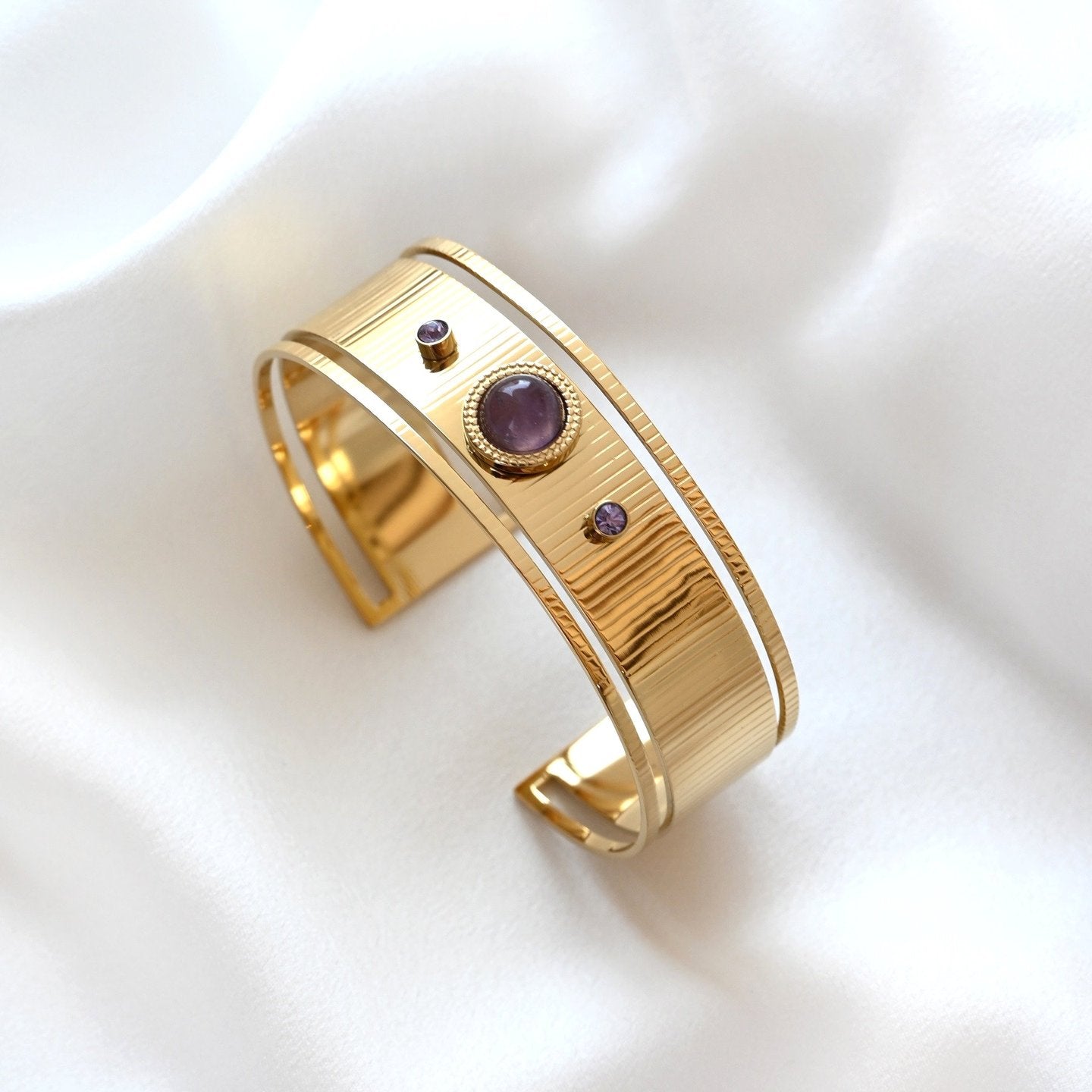 Bracelet rigide acier large avec améthyste