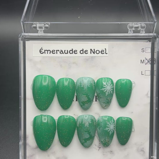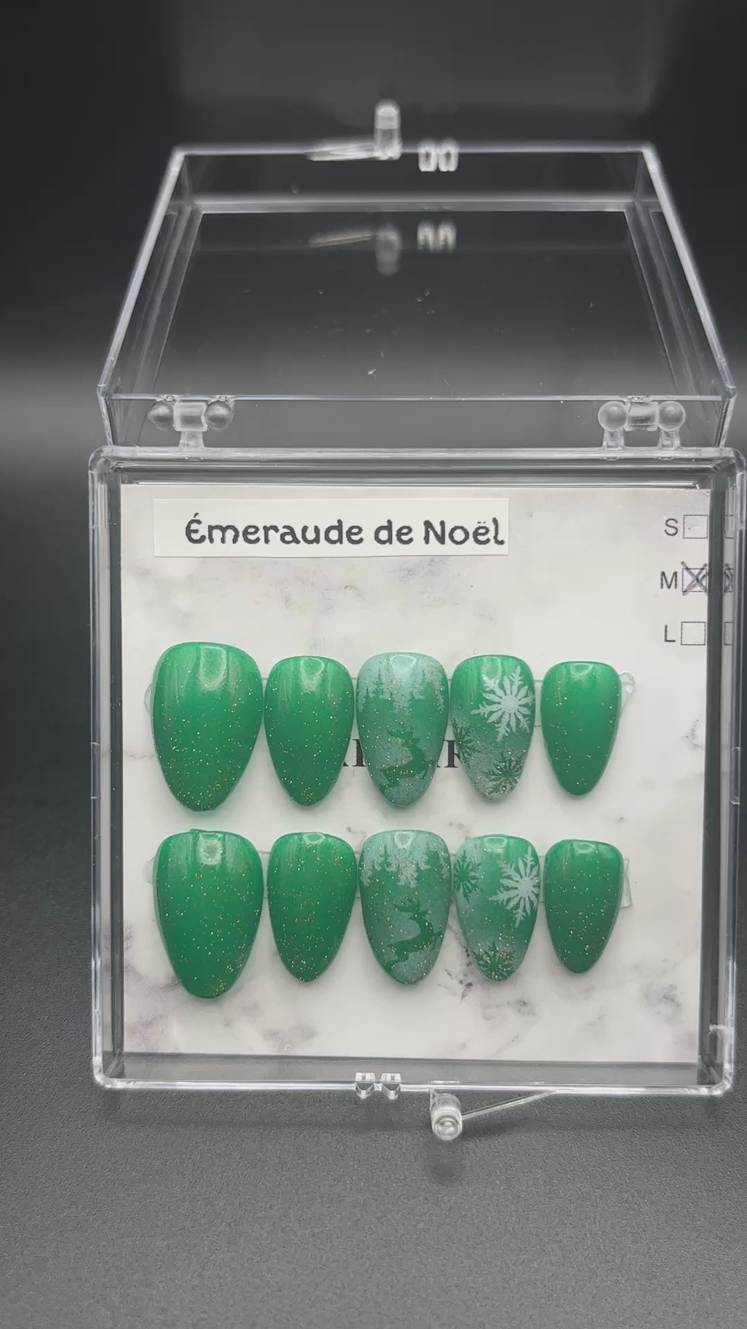Fais briller la magie des fêtes au bout de tes doigts avec notre set Émeraude de Noël.